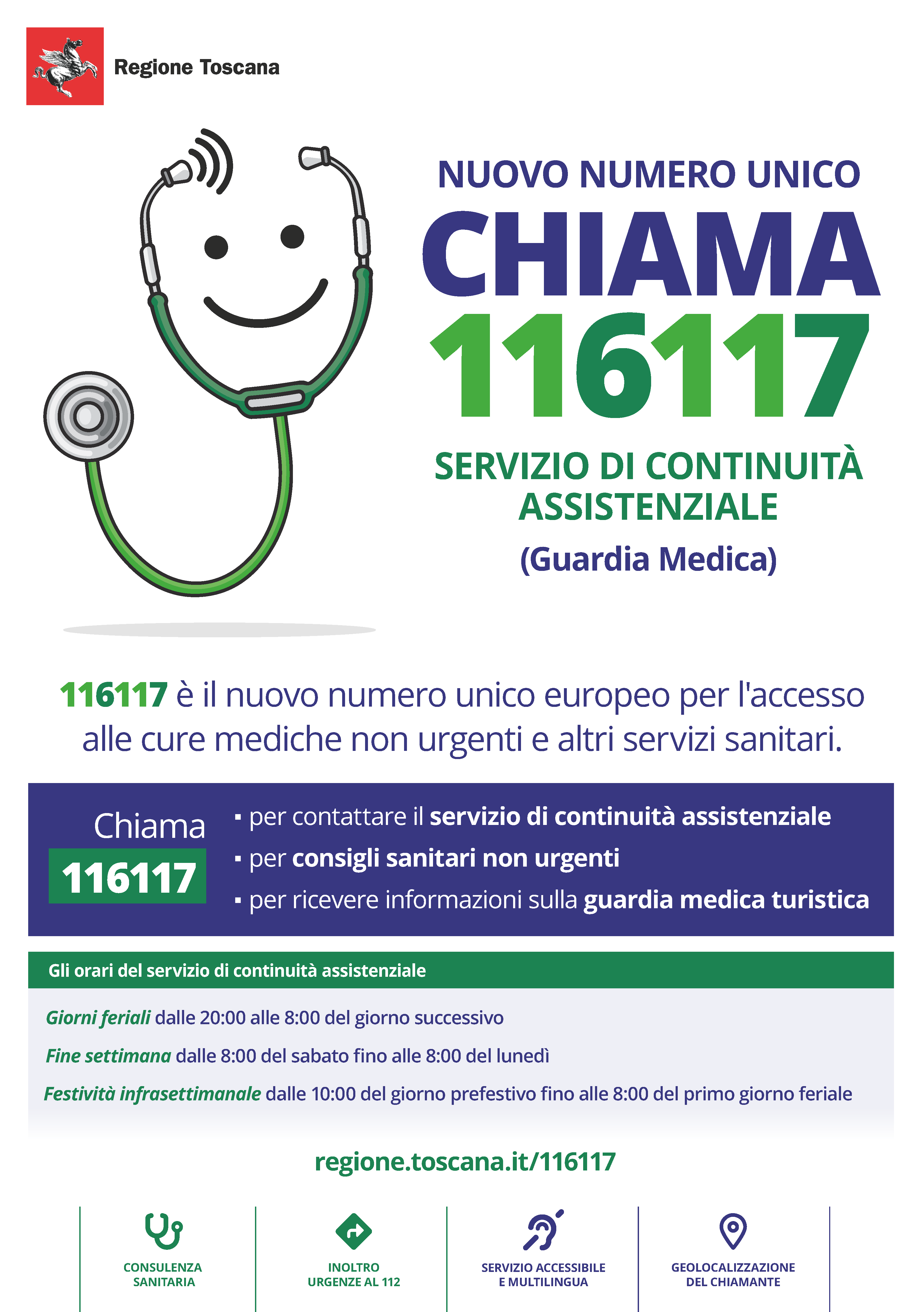 È entrato in funzione anche nella provincia di Prato il nuovo numero unico europeo 116117 per mettersi in contatto con la guardia medica e da chiamare per le cure non urgenti.